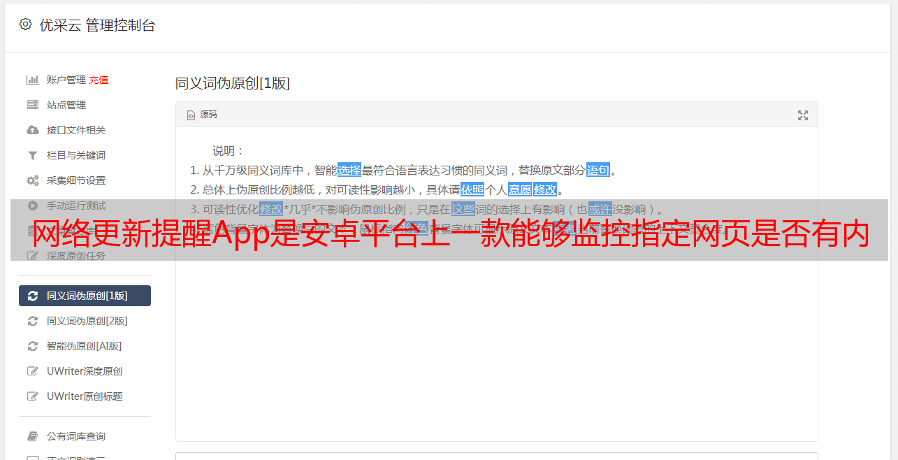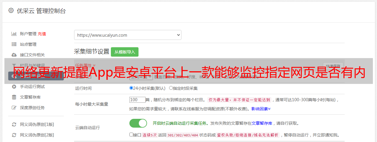 优采云 发布时间: 2021-04-03 05:10网络更新提醒App是安卓平台上一款能够监控指定网页是否有内容更新或修改