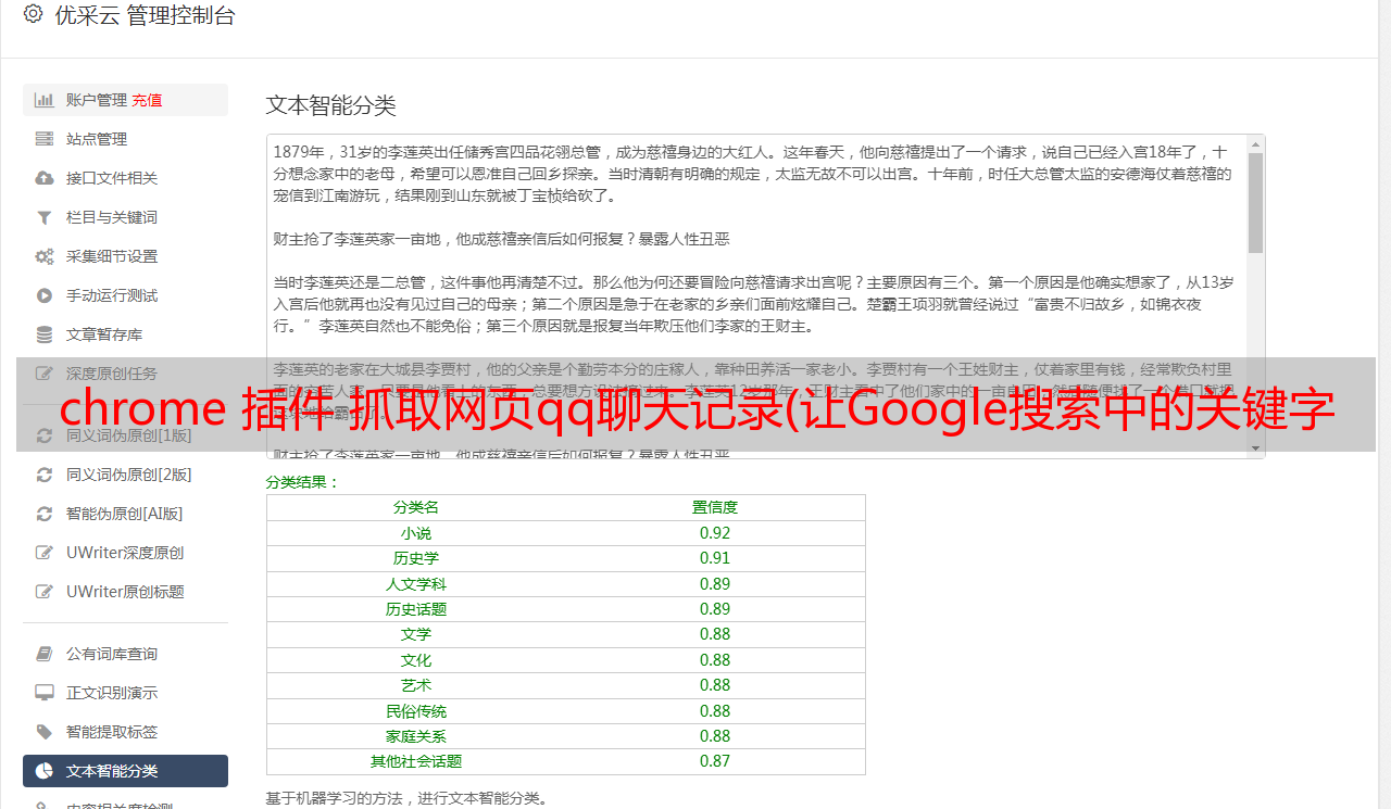 优采云 发布时间: 2021-12-08 23:10chrome 插件 抓取网页qq聊天记录(让Google搜索中的关键字变成红色高亮这个功能(组图))