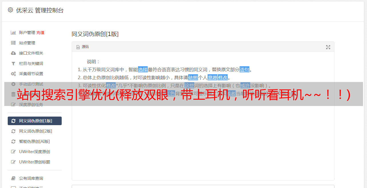 优采云 发布时间: 2021-12-09 03:23站内搜索引擎优化(释放双眼,带上耳机,听听看耳机~~!!)