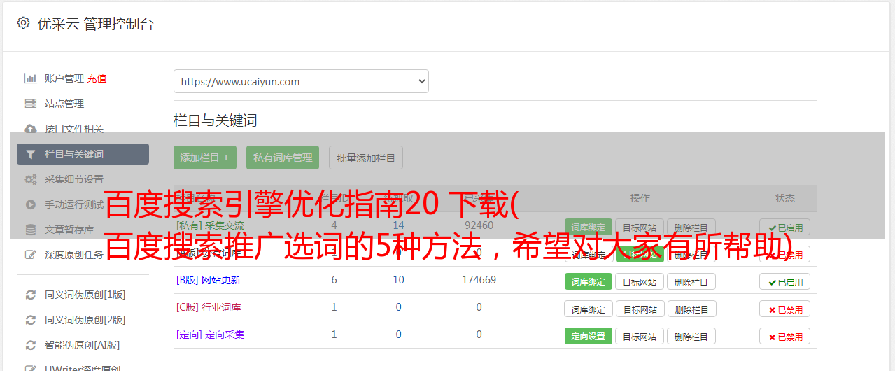 添加单词的方法有很多种,不同的方法各有优缺点。但最终,无论加什么词,都需要结合你的产品来加。最好对应频道。比如百度加词,利用百度后台功能加词。添加来自其他渠道的词,您可以使用其他渠道。一些第三方站长工具也很有用。可以添加到竞品词和行业产品词中,你可以重点关注。