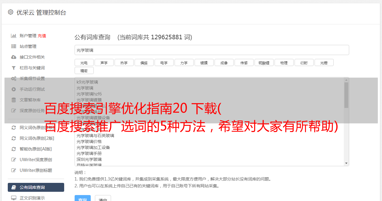 百度搜索引擎优化指南20 下载( 百度搜索推广选词的5种方法,希望对大家有所帮助)