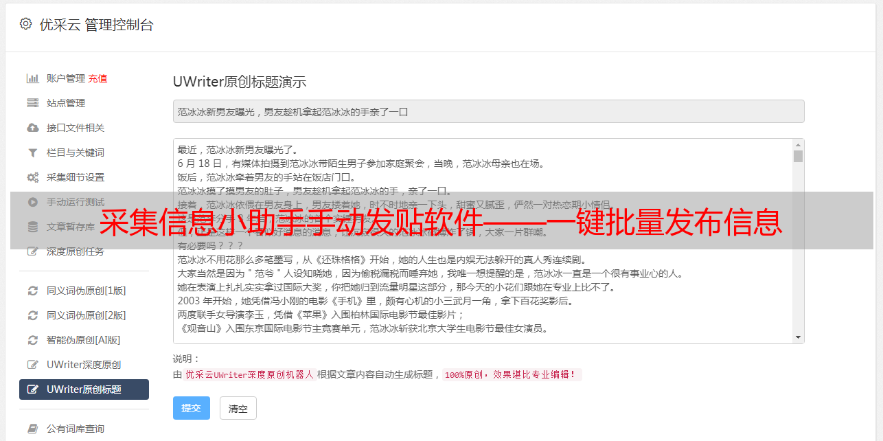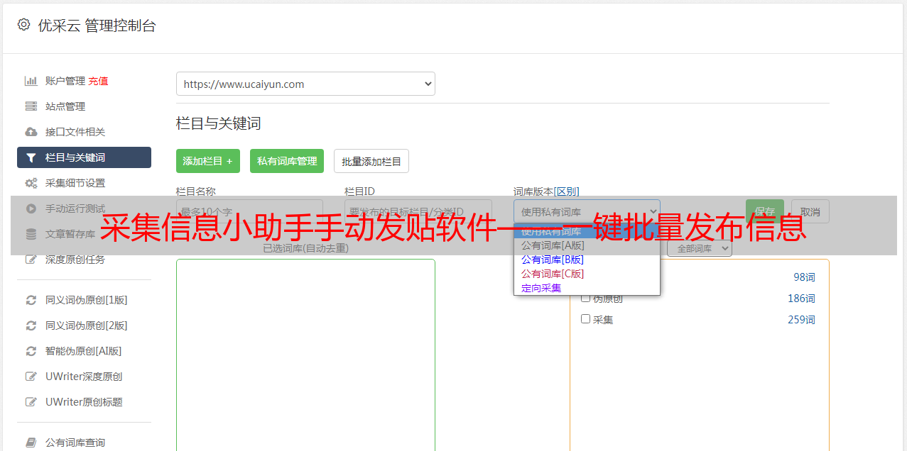 优采云 发布时间: 2020-08-03 14:03采集信息小助手手动发贴软件——一键批量发布信息s2z6