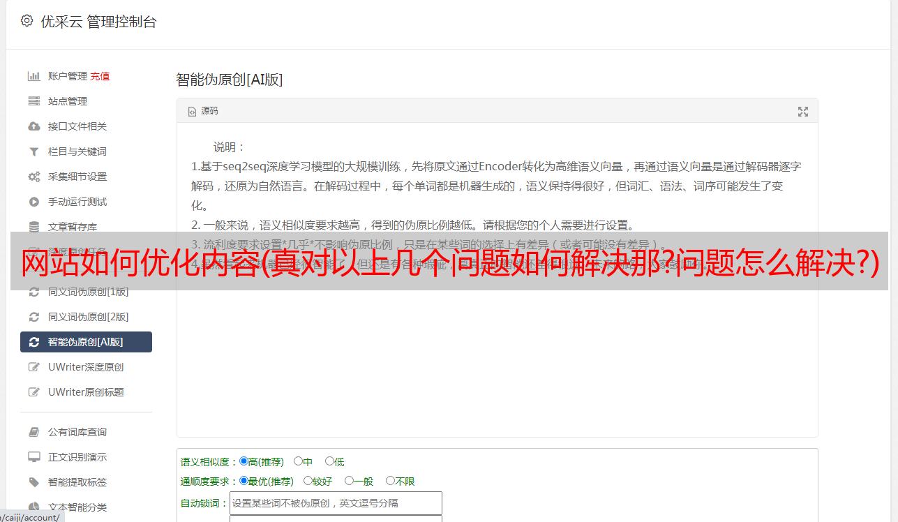 优采云 发布时间: 2021-12-10 08:31网站如何优化内容(真对以上几个问题如何解决那?问题怎么解决?)