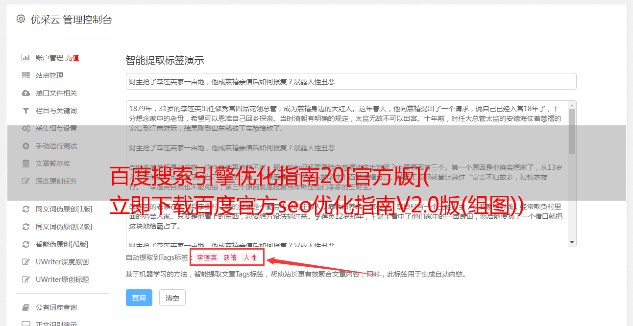 优采云 发布时间: 2021-12-10 09:04百度搜索引擎优化指南20[官方版](