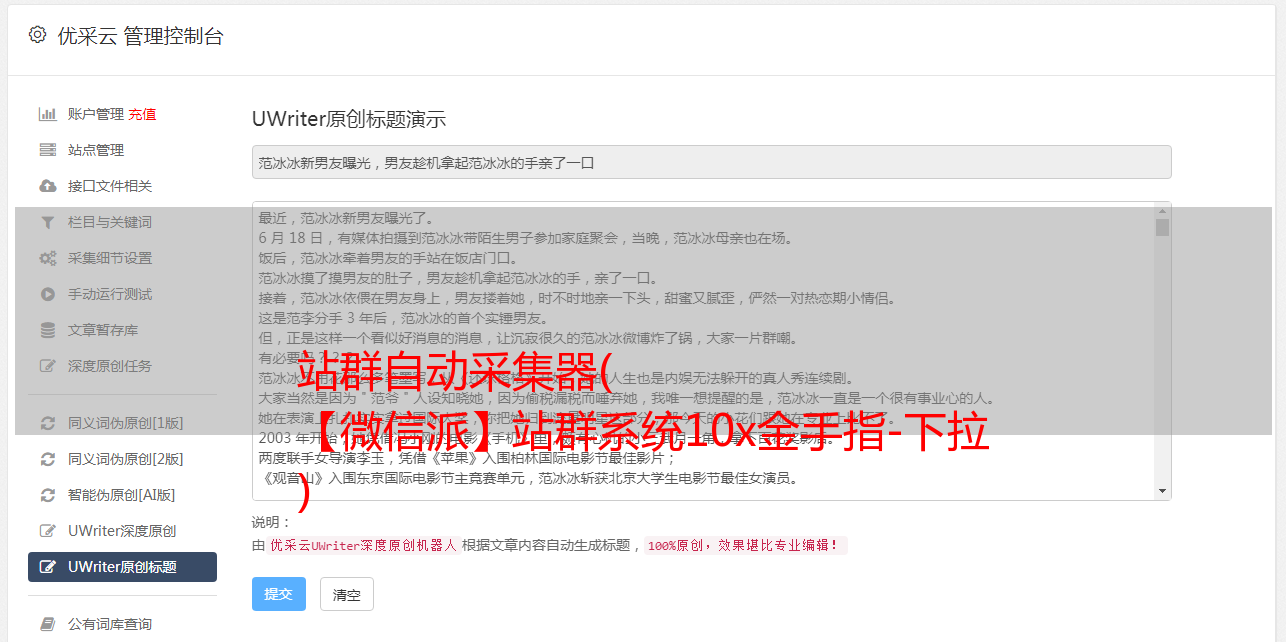 站群自动采集器( 【微信派】站群系统10x金手指-下拉 )