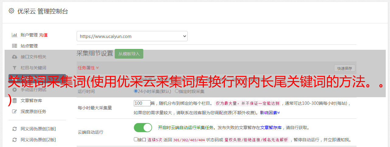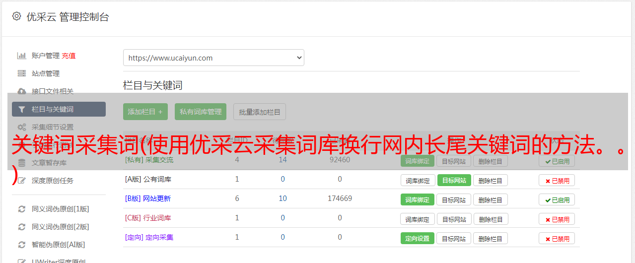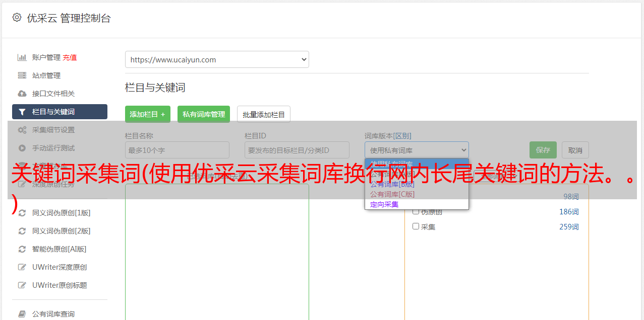 关键词采集词(使用优采云采集词库换行网内长尾关键词的方法。。 )