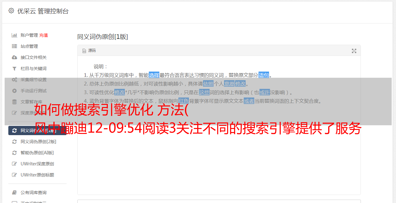 如何做搜索引擎优化 方法( 风中蹦迪12-09:54阅读3关注不同的搜索引擎提供了服务后台常见功能来优化网站搜索,)