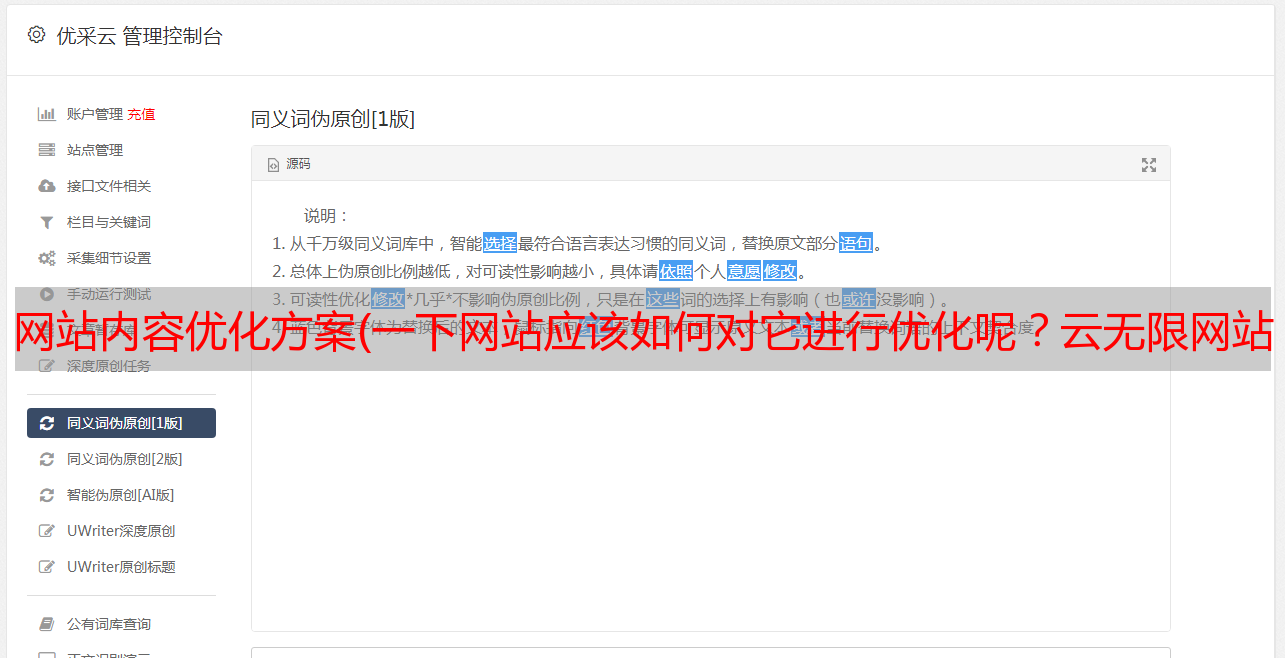 优采云 发布时间: 2021-12-11 05:34网站内容优化方案(一下网站应该如何对它进行优化呢?云无限网站优化