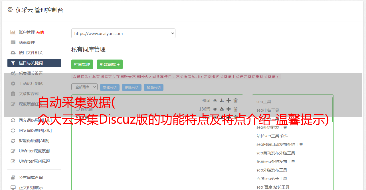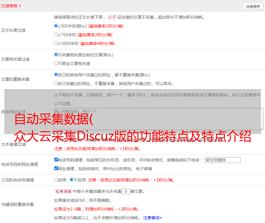 众大云采集Discuz版的功能特点及特点介绍-温馨提示)
