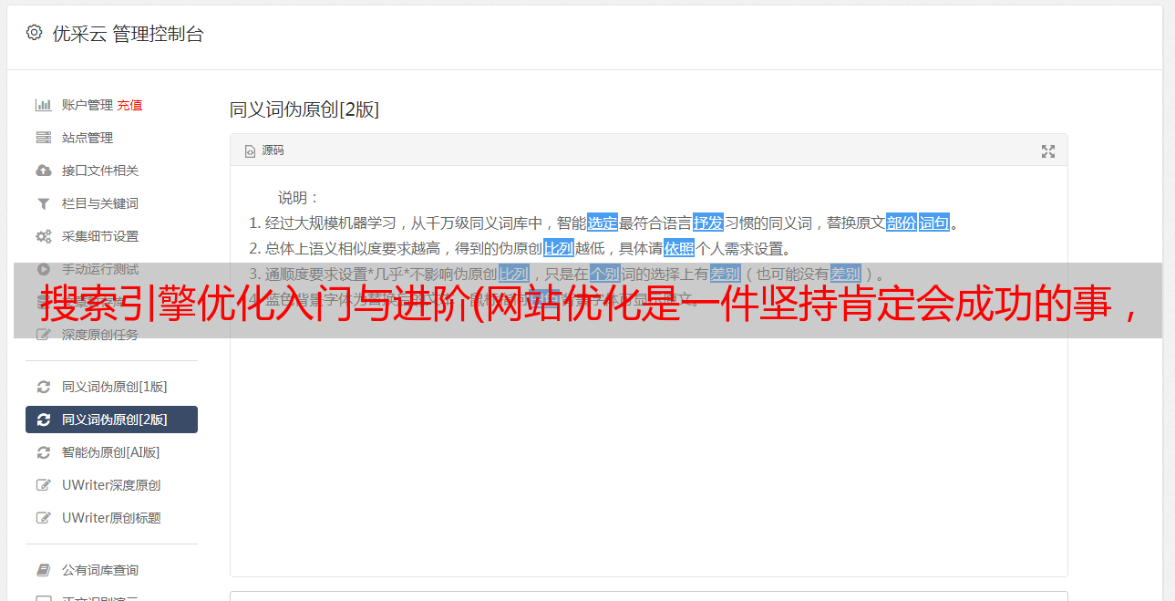 优采云 发布时间: 2021-12-11 07:03搜索引擎优化入门与进阶(网站优化是一件坚持肯定会成功的事,你知道吗?)
