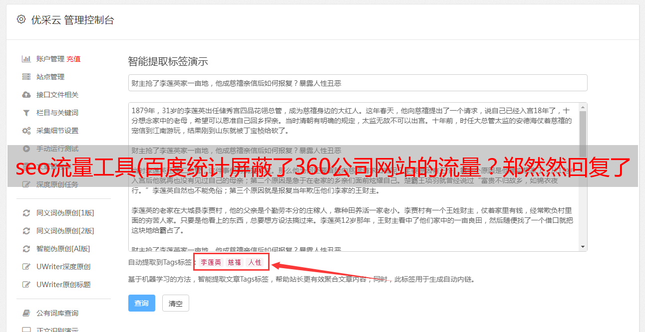 优采云 发布时间: 2021-12-11 08:24seo流量工具(百度统计屏蔽了360公司网站的流量?郑然然回复了问题)