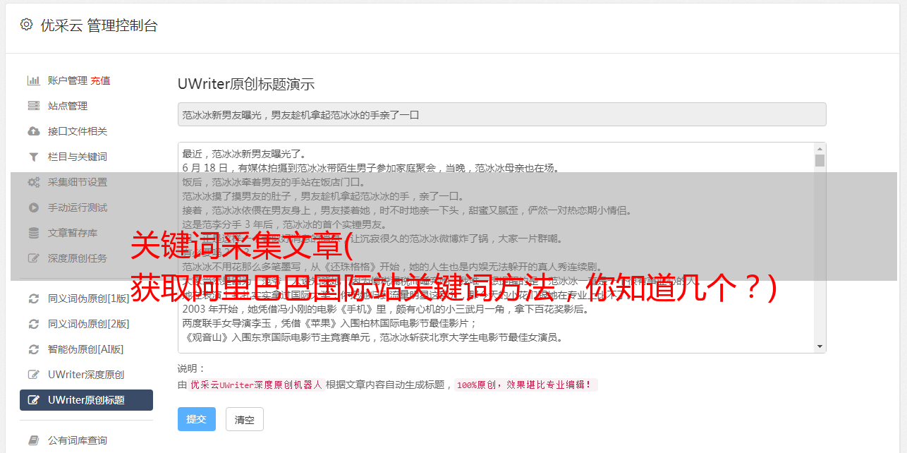 优采云 发布时间: 2021-12-12 17:41获取阿里巴巴国际站关键词方法,你知道几个?)