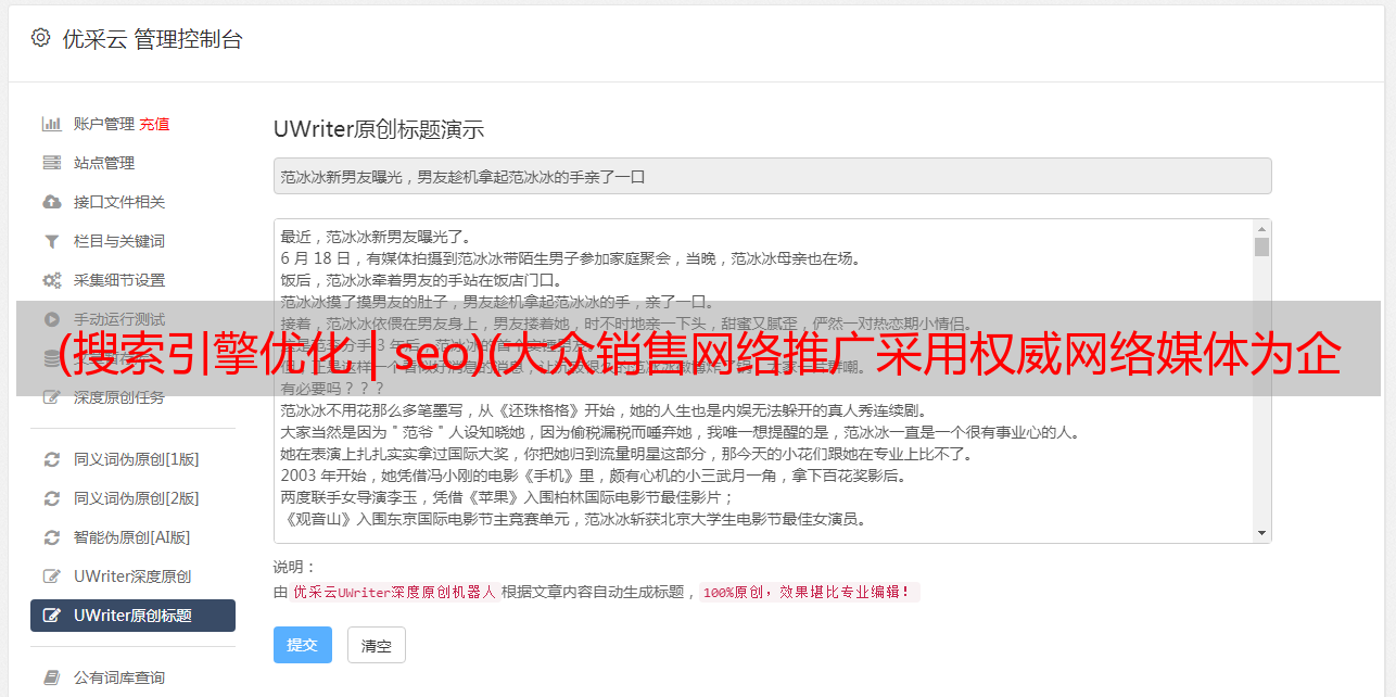 优采云 发布时间: 2021-12-13 05:23(搜索引擎优化 | seo)(大众销售网络推广采用权威网络媒体为企业带来新的希望)