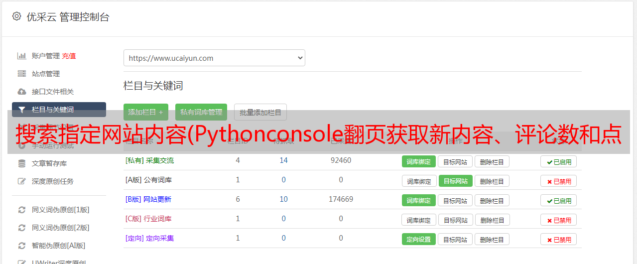 优采云 发布时间: 2021-12-13 06:10搜索指定网站内容(Pythonconsole翻页获取新内容、评论数和点赞数(图))