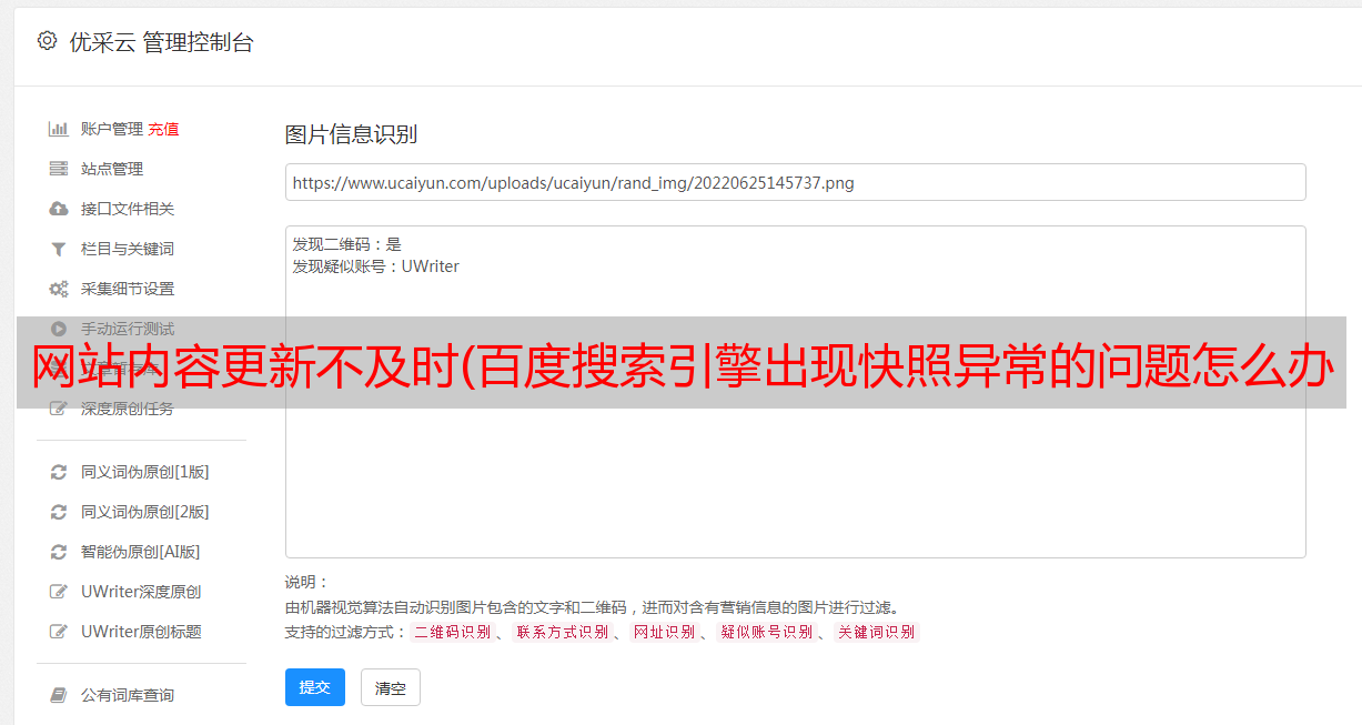 优采云 发布时间: 2021-12-13 06:20网站内容更新不及时(百度搜索引擎出现快照异常的问题怎么办?问题分析)