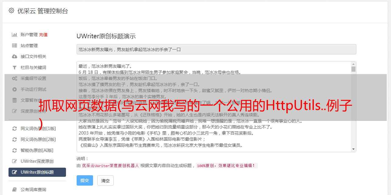 优采云 发布时间: 2021-12-13 11:29抓取网页数据(乌云网我写的一个公用的HttpUtils..例子