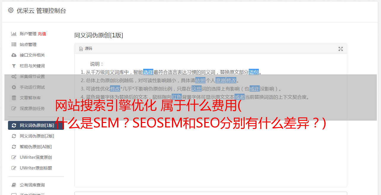 优采云 发布时间: 2021-12-13 13:08网站搜索引擎优化 属于什么费用(