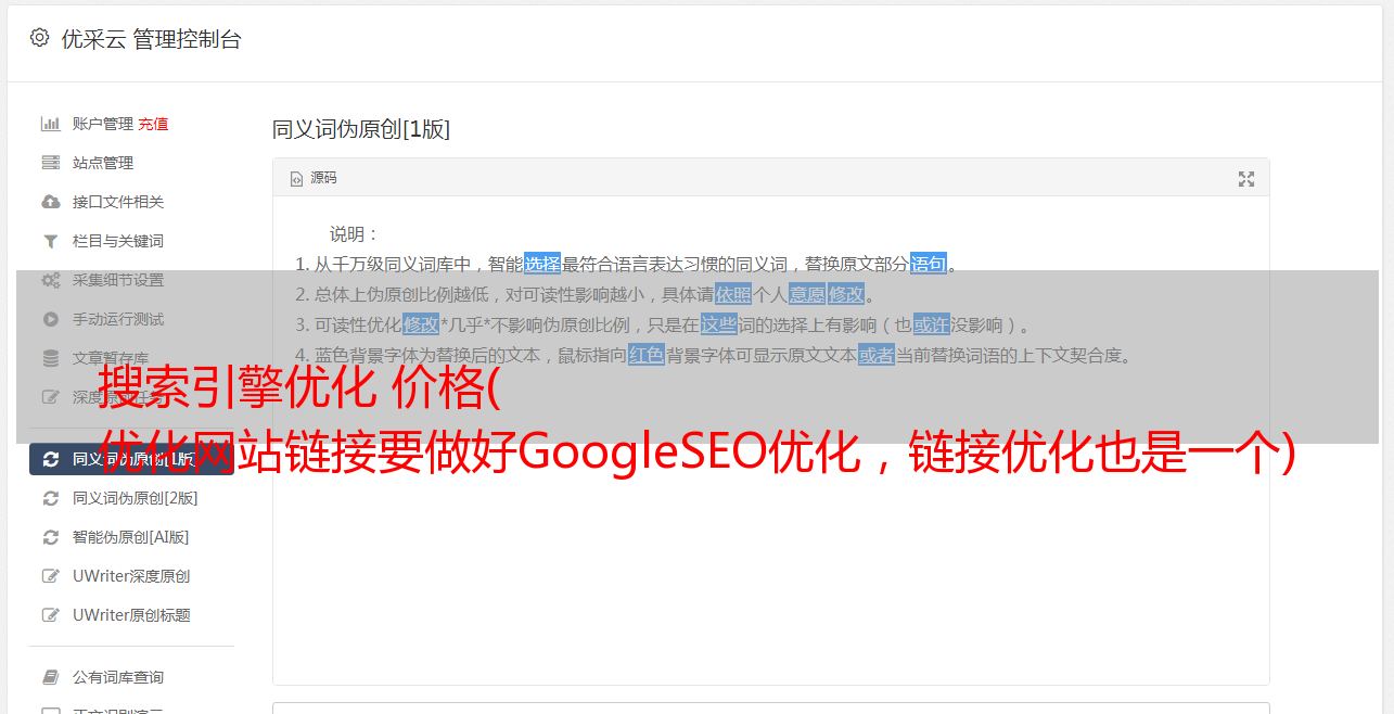 优采云 发布时间: 2021-12-13 19:22搜索引擎优化 价格(