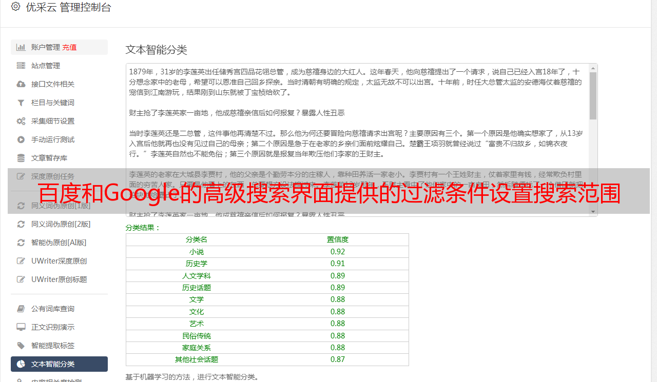 优采云 发布时间: 2021-04-04 05:10百度和Google的高级搜索界面提供的过滤条件设置搜索范围
