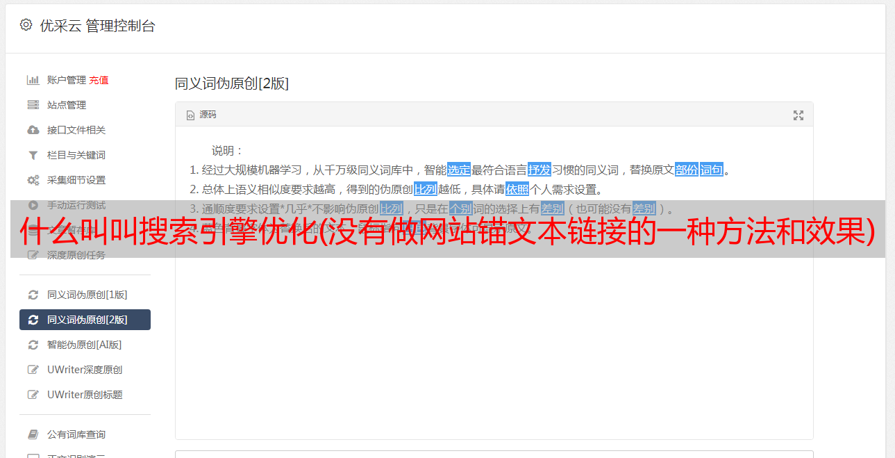 优采云 发布时间: 2021-12-13 22:18什么叫叫搜索引擎优化(没有做网站锚文本链接的一种方法和效果)