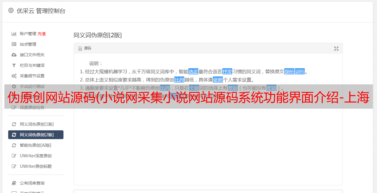 优采云 发布时间: 2021-12-13 23:01伪原创网站源码(小说网采集小说网站源码系统功能界面介绍-上海怡健)