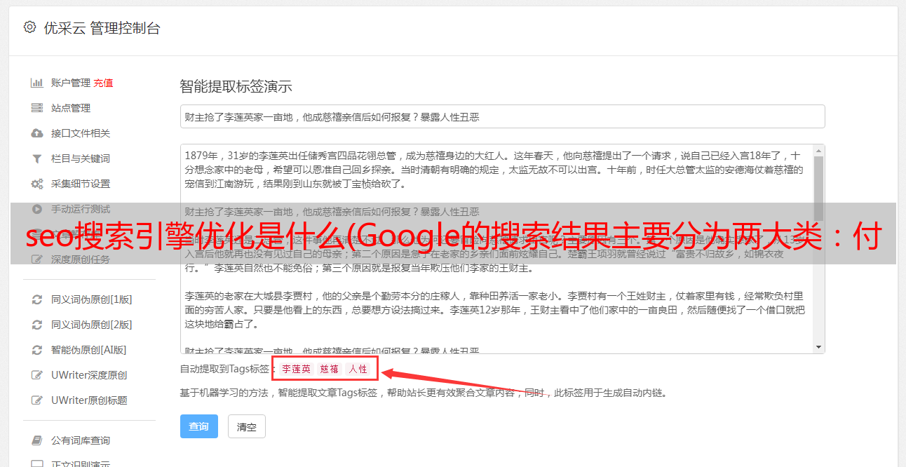 优采云 发布时间: 2021-12-14 05:18seo搜索引擎优化是什么(Google的搜索结果主要分为两大类:付费搜索和自然搜索