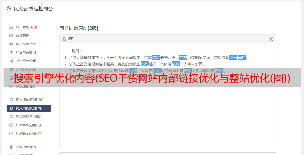 优采云 发布时间: 2021-12-14 10:20搜索引擎优化内容(SEO干货网站内部链接优化与整站优化(图))