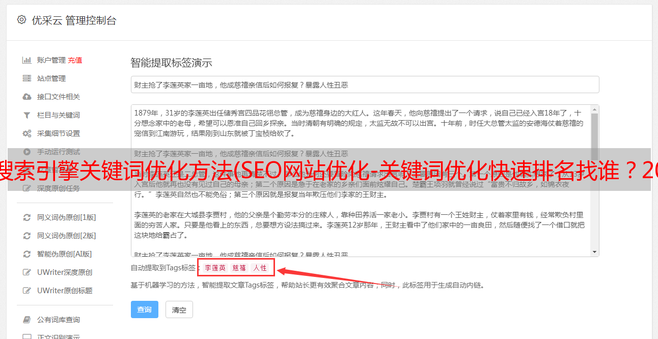 优采云 发布时间: 2021-12-14 12:01搜索引擎关键词优化方法(SEO网站优化-关键词优化快速排名找谁?2021-11-01)