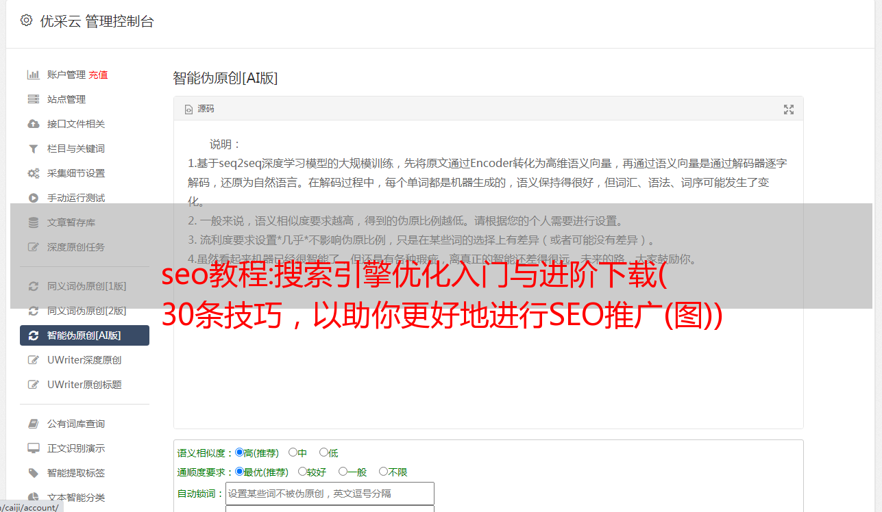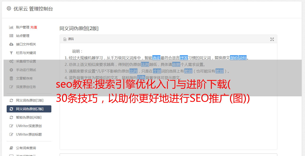 优采云 发布时间: 2021-12-14 12:19seo教程:搜索引擎优化入门与进阶下载(