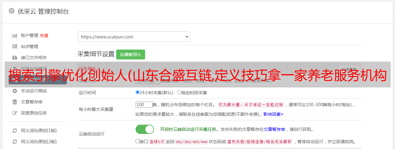 优采云 发布时间: 2021-12-14 13:35搜索引擎优化创始人(山东合盛互链,定义技巧拿一家养老服务机构做示例)