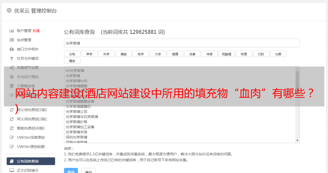 优采云 发布时间: 2021-12-15 09:16网站内容建设(酒店网站建设中所用的填充物“血肉”有哪些?