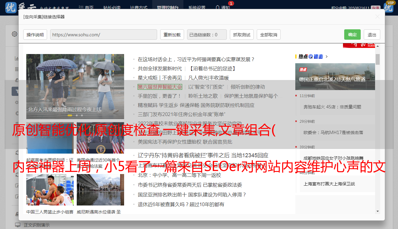 原创智能优化,原创度检查,一键采集,文章组合( 内容神器上周,小5看了一篇来自SEOer对网站内容维护心声的文章)