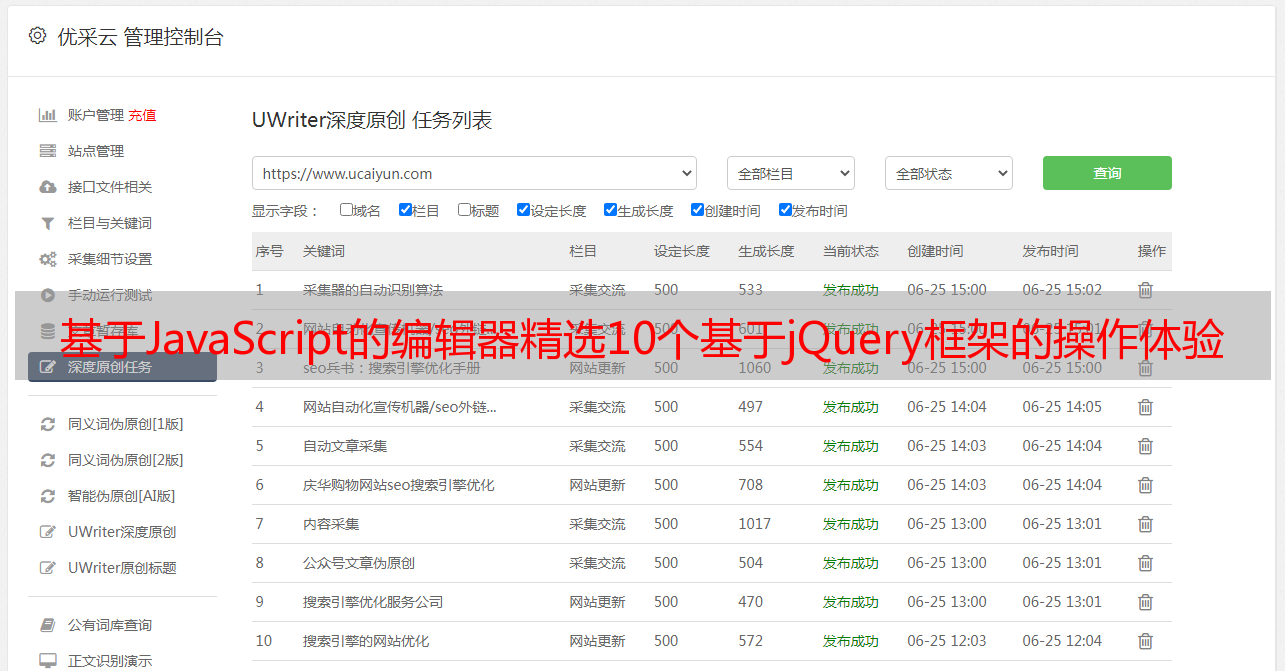 优采云 发布时间: 2021-04-04 21:14基于JavaScript的编辑器精选10个基于jQuery框架的操作体验
