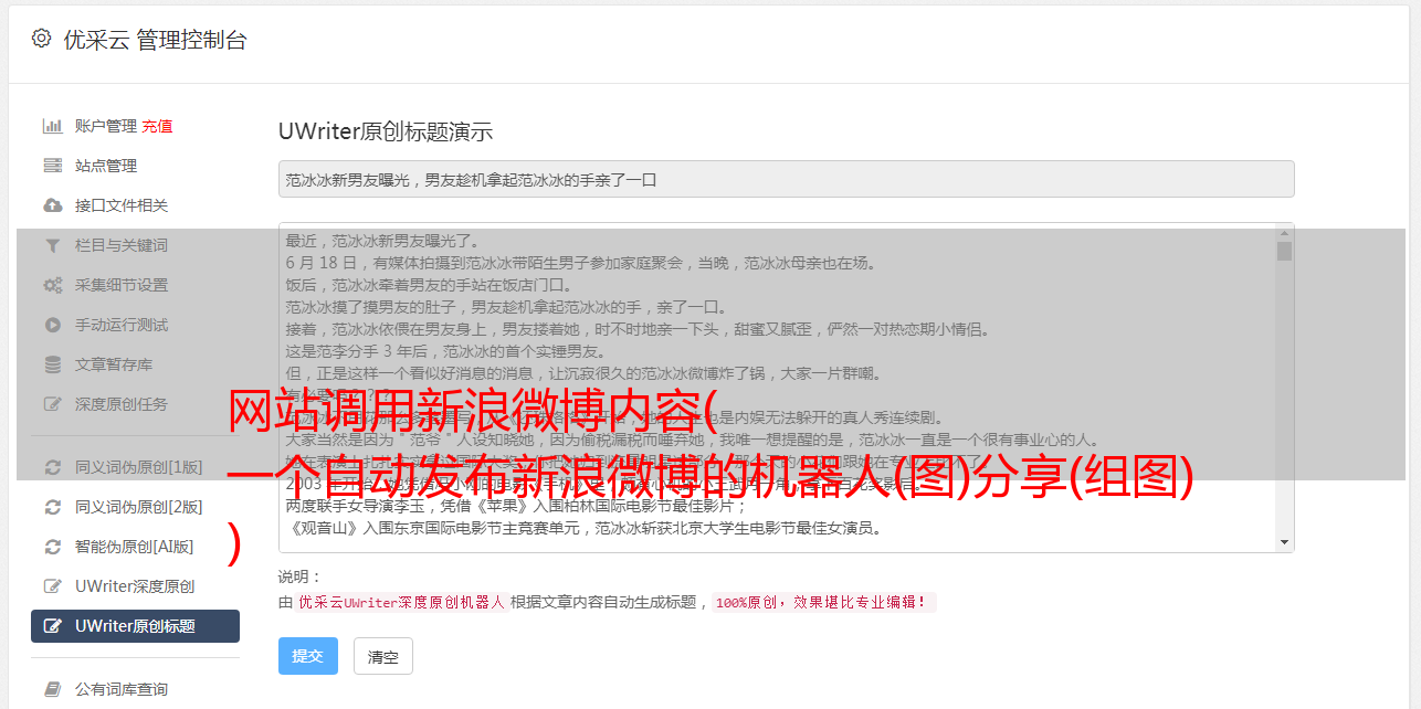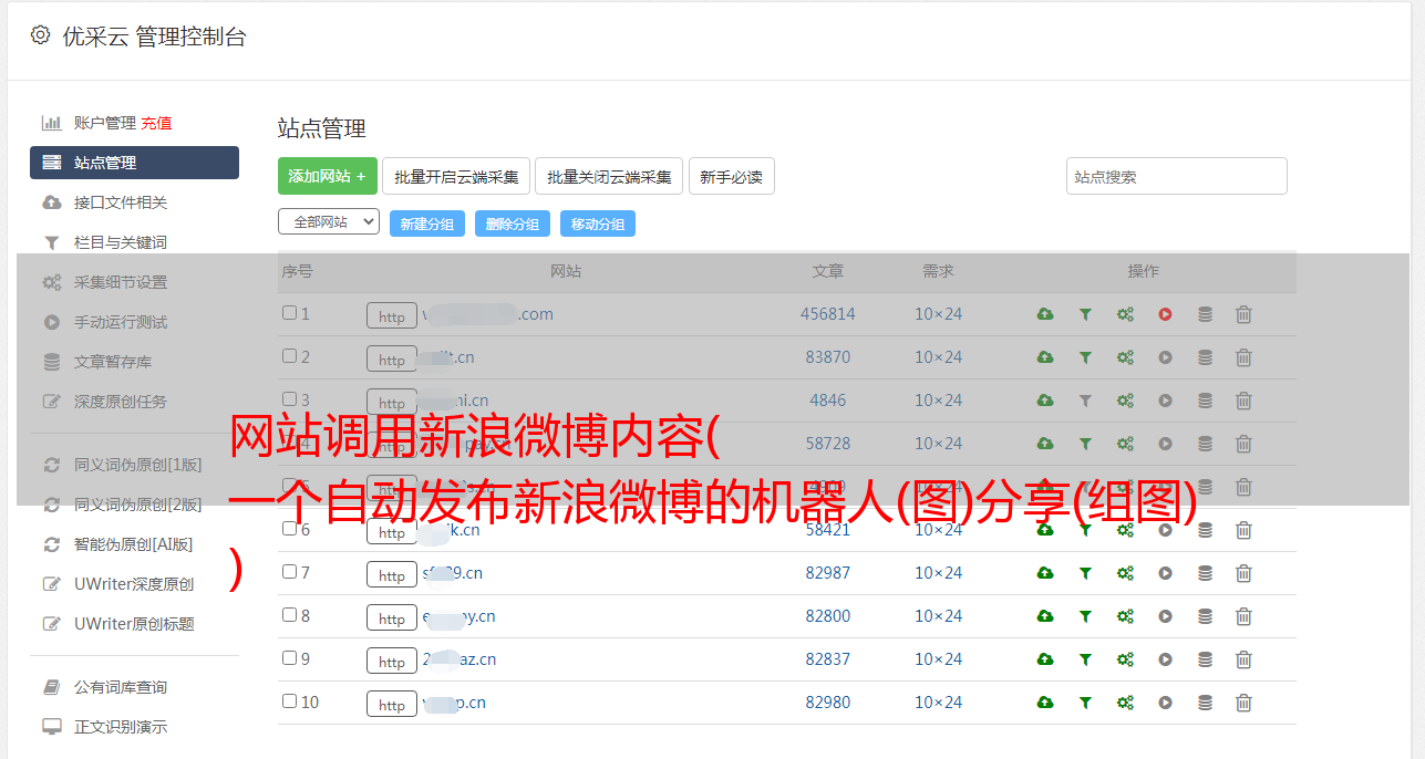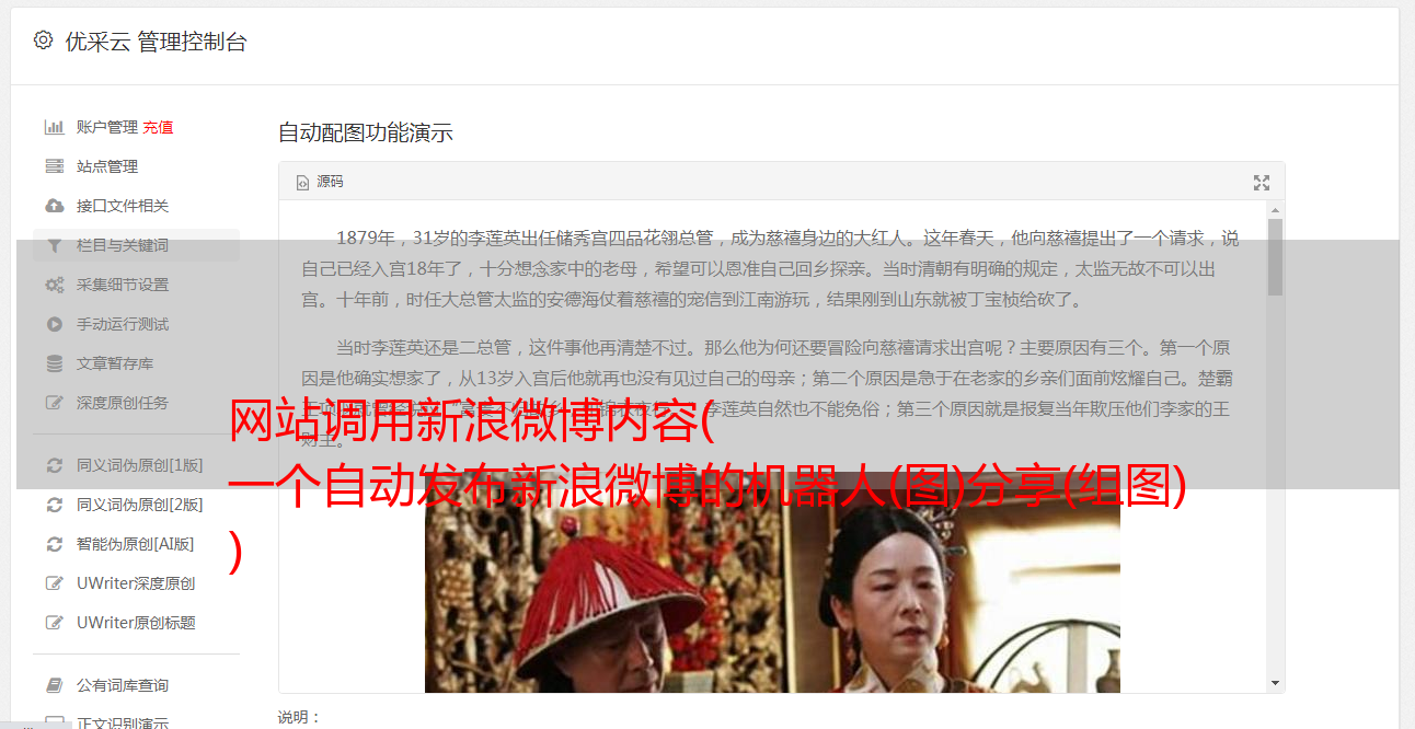 优采云 发布时间: 2021-12-15 22:16网站调用新浪微博内容(