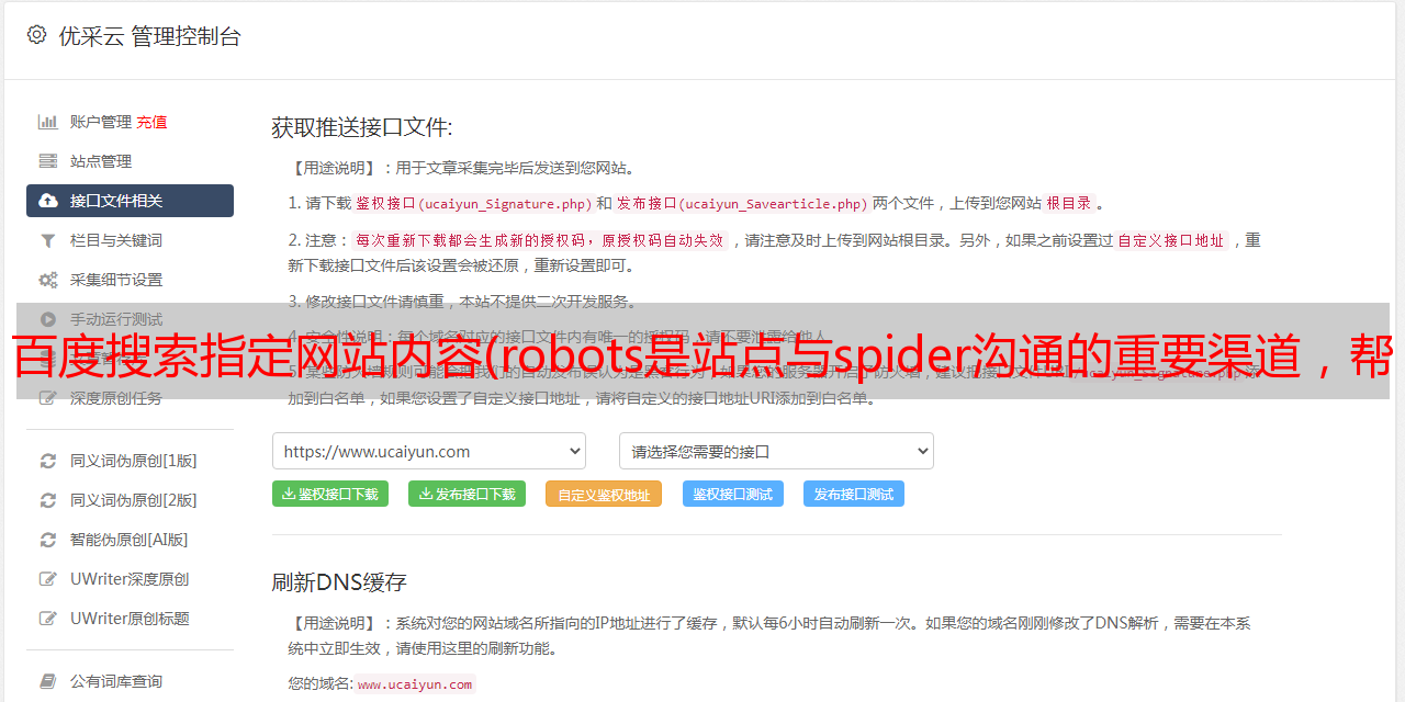 优采云 发布时间: 2021-12-15 22:20百度搜索指定网站内容(robots是站点与spider沟通的重要渠道,帮助站长正确设置robots