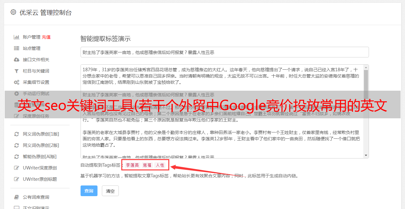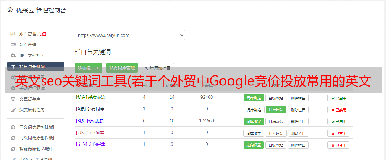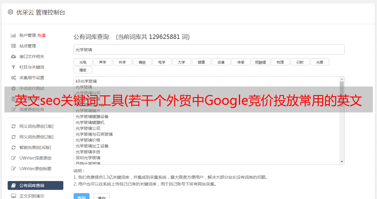 优采云 发布时间: 2021-12-16 05:23英文seo关键词工具(若干个外贸中Google竞价投放常用的英文关键词挖掘工具介绍)