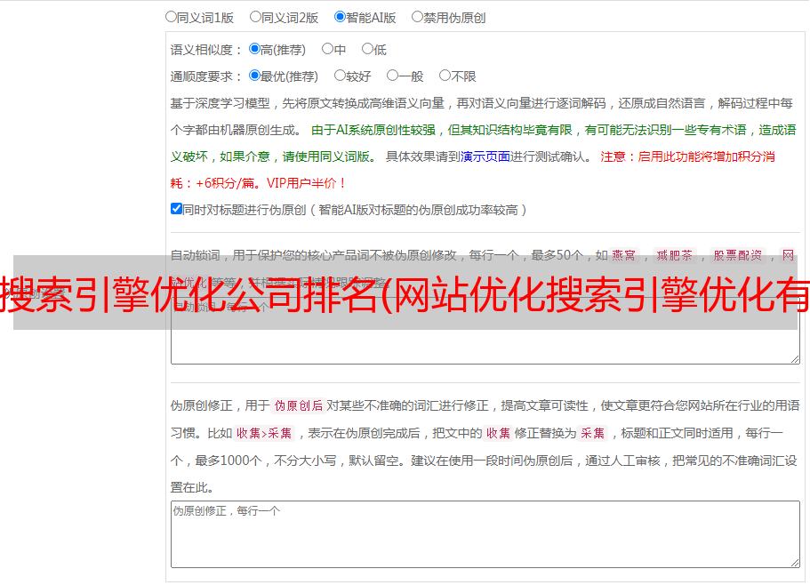 价格排名的基本特征是按点击付费。广告出现在搜索结果中(通常在顶部位置)。如果没有被用户点击,则不收取*敏*感*词*。在同一个关键词广告中,每次点击价格最高的广告排在第一位,下面的其他位置也根据广告主设定的广告点击价格确定。看看这个,我觉得还好优化其实很简单,你每天更新点文章,偶尔发外链,做一些友情链接。