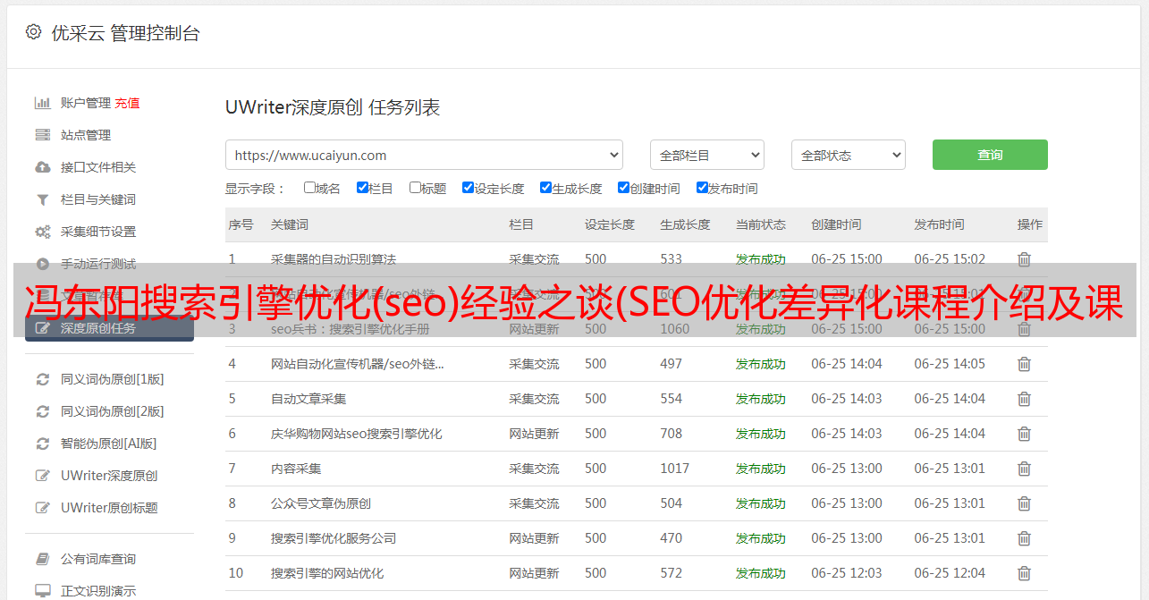 优采云 发布时间: 2021-12-16 05:31冯东阳搜索引擎优化(seo)经验之谈(SEO优化差异化课程介绍及课程目录和简介(图))