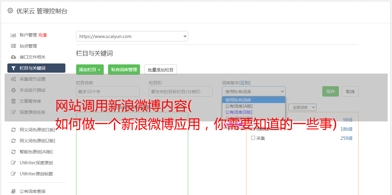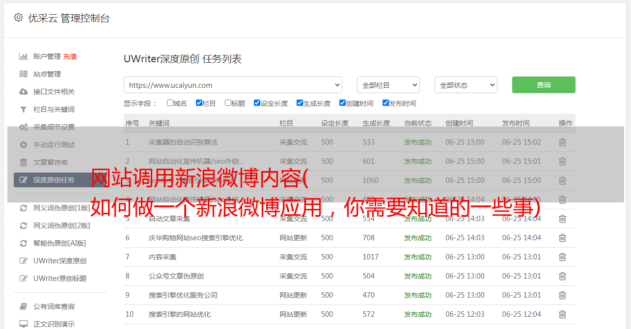 优采云 发布时间: 2021-12-16 06:15网站调用新浪微博内容(