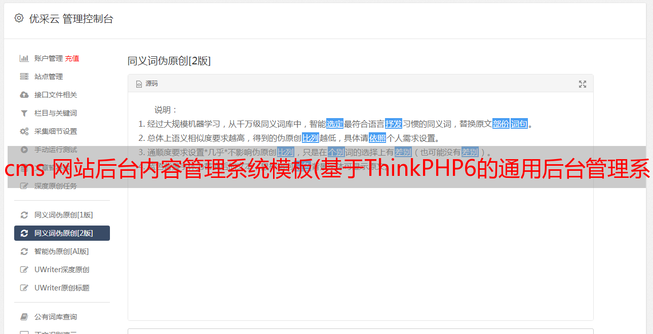 优采云 发布时间: 2021-12-16 11:38cms 网站后台内容管理系统模板(基于ThinkPHP6的通用后台管理系统,使用composer管理系统的安装项目地址