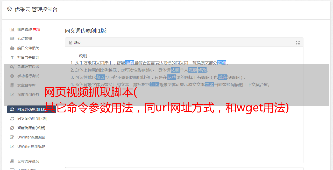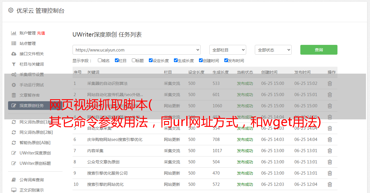 优采云 发布时间: 2021-12-16 12:29网页视频抓取脚本(