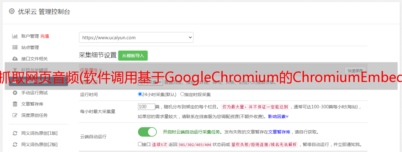 优采云 发布时间: 2021-12-16 14:08抓取网页音频(软件调用基于GoogleChromium的ChromiumEmbeddedFramework(CEF)框架)