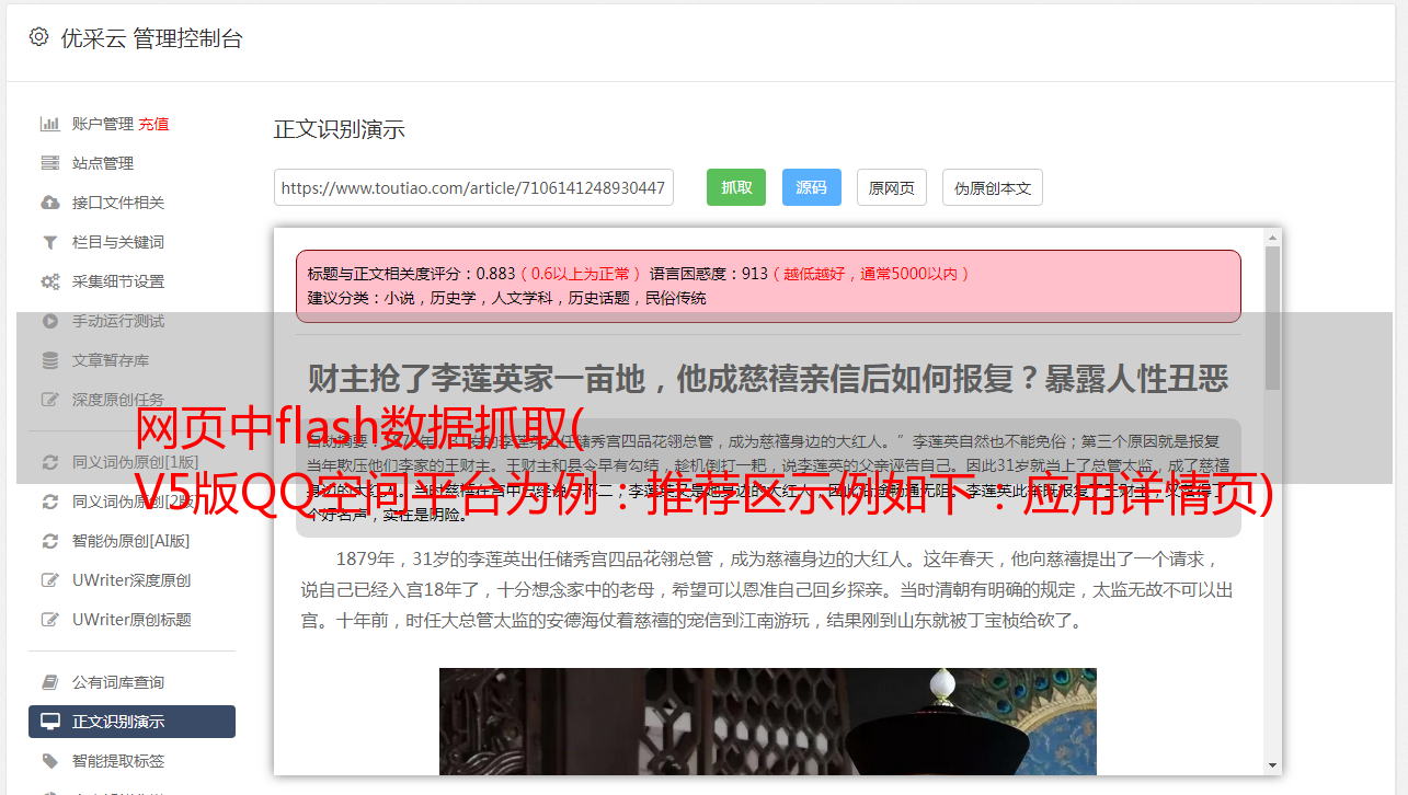 网页中flash数据抓取( V5版QQ空间平台为例:推荐区示例如下:应用详情页)