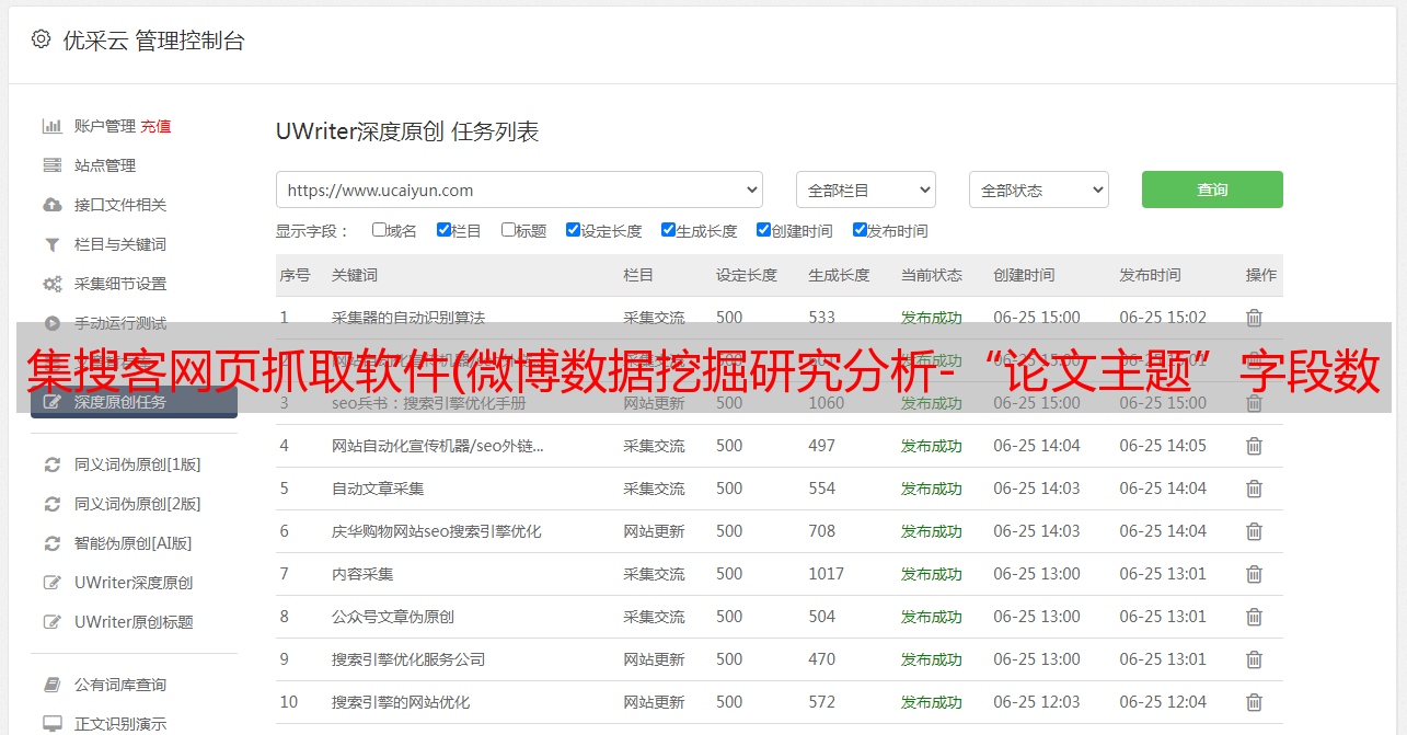 优采云 发布时间: 2021-12-17 01:30集搜客网页抓取软件(微博数据挖掘研究分析-“论文主题”字段数据数据进行共享(组图))