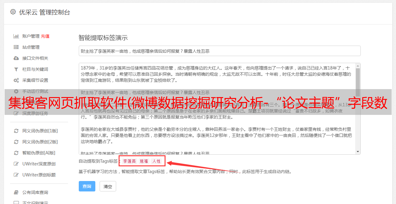 集搜客网页抓取软件(微博数据挖掘研究分析-“论文主题”字段数据数据进行共享(组图))
