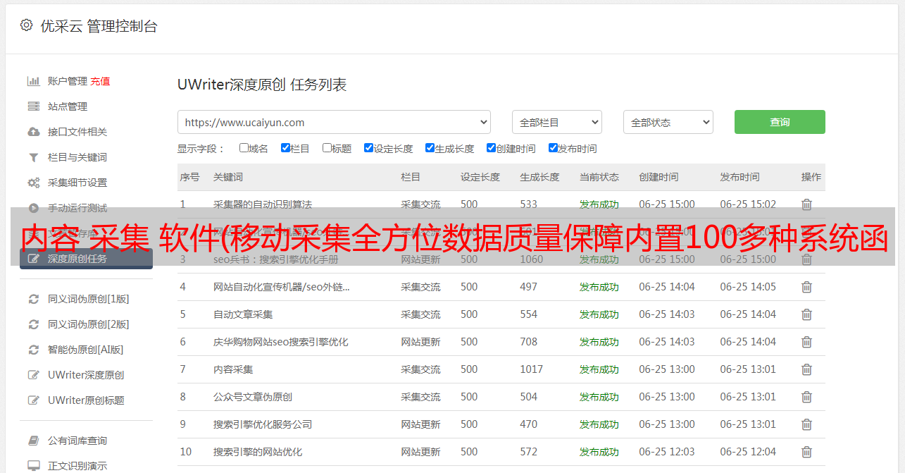 优采云 发布时间: 2021-12-17 03:01内容 采集 软件(移动采集全方位数据质量保障内置100多种系统函数(组图))