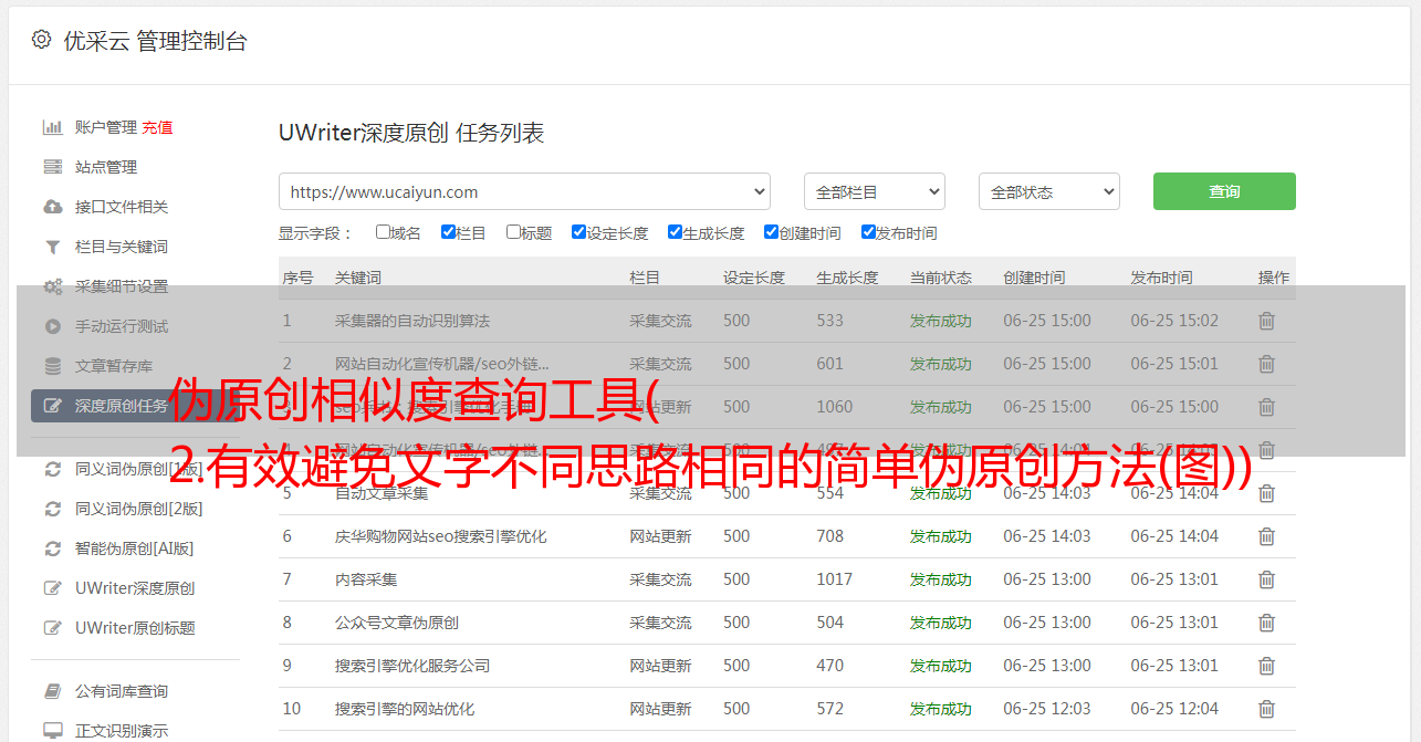 优采云 发布时间: 2021-12-17 04:09伪原创相似度查询工具(