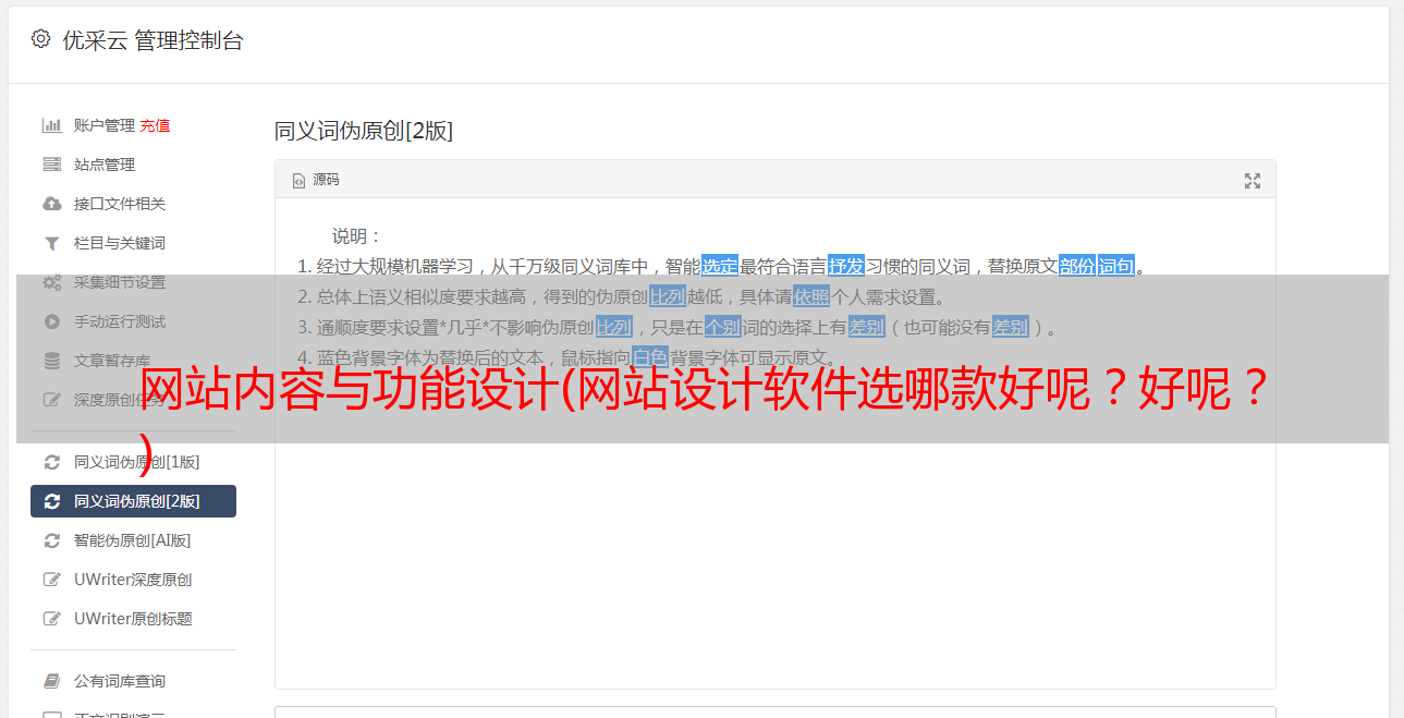 优采云 发布时间: 2021-12-17 07:03网站内容与功能设计(网站设计软件选哪款好呢?好呢?