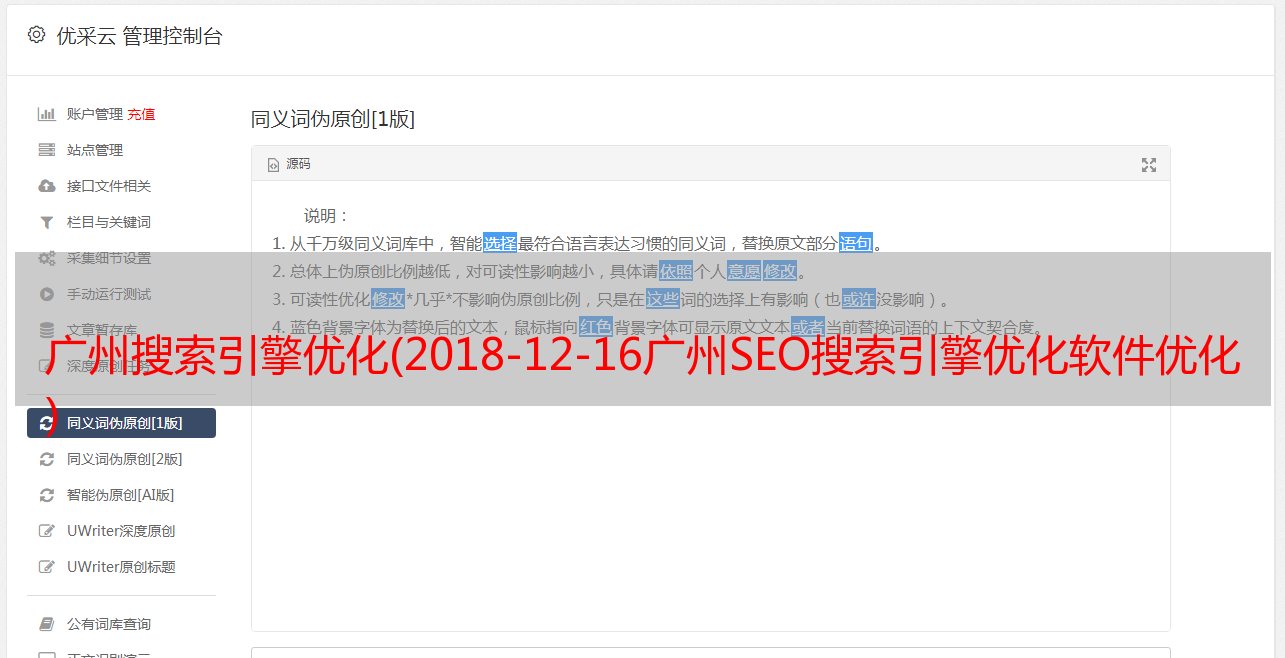 优采云 发布时间: 2021-12-17 07:31广州搜索引擎优化(2018-12-16广州SEO搜索引擎优化软件优化