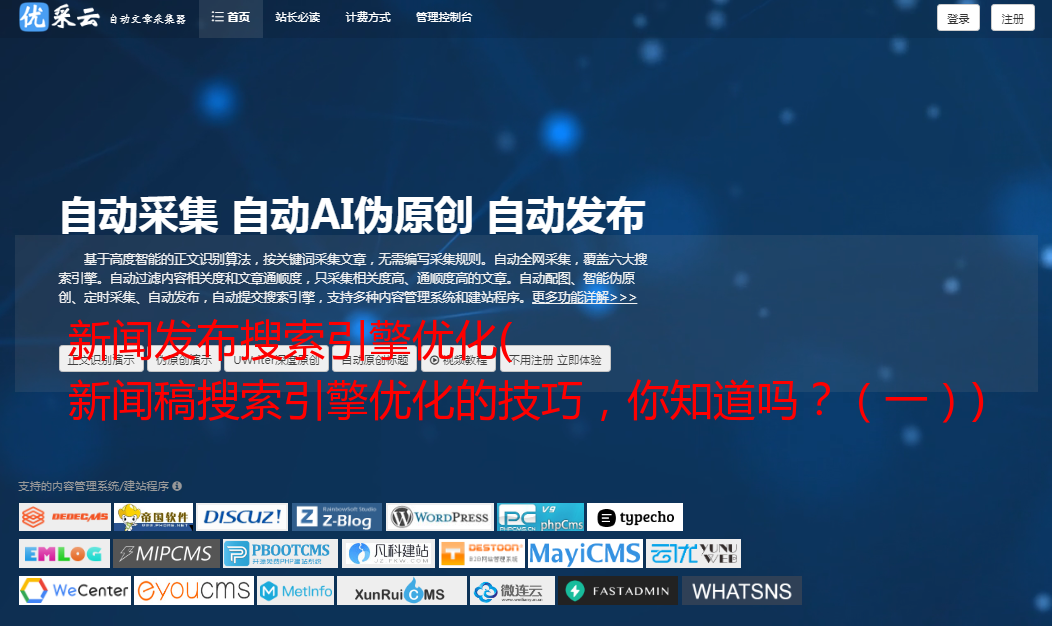 优采云 发布时间: 2021-12-17 11:24新闻发布搜索引擎优化(